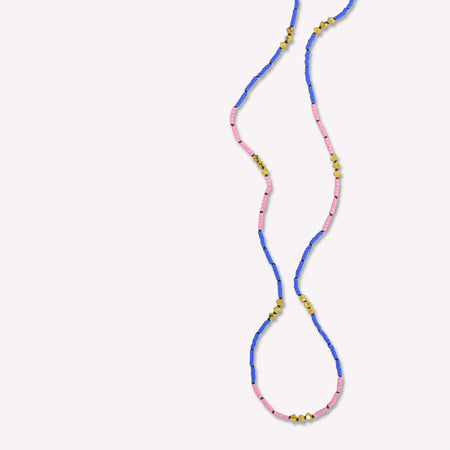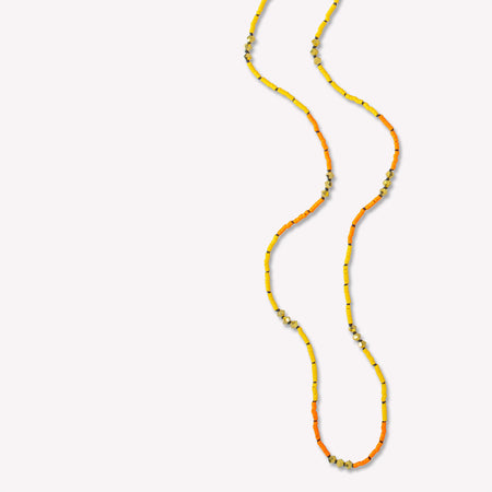 Minimalist design of gold-plated Czech crystals and Japanese glass beads hand-knotted on a luxurious black silk cord for contrast. Designed without a clasp, simply "pull over."